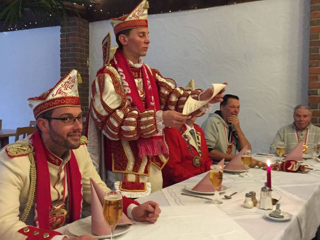 Der letzte Sonntag vor den „Tollen Tagen“ wird noch einmal für eine Versammlung genutzt die in der Regel kurz ist. Auch an diesem Tag sind Prinz und Hofmarschall unsere Gäste und gemeinsam wird eine kräftige Portion Grünkohl verspeist. Auf den folgenden Bildern sieht man das Essen nach altem „Brauch“