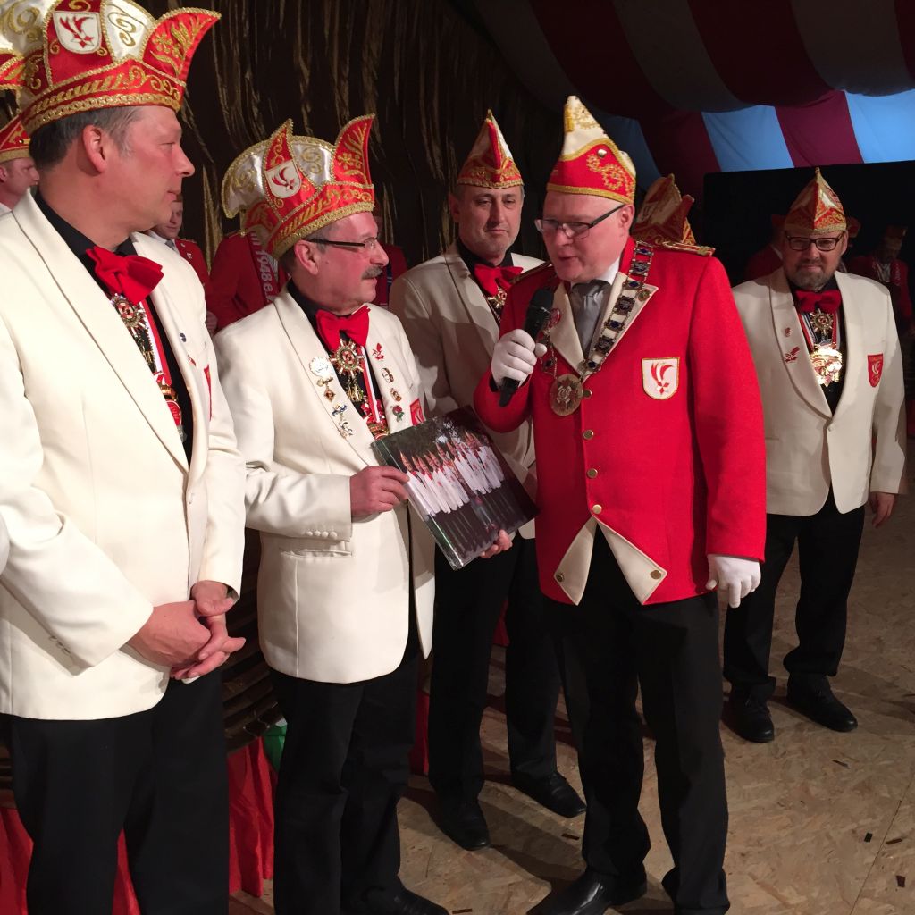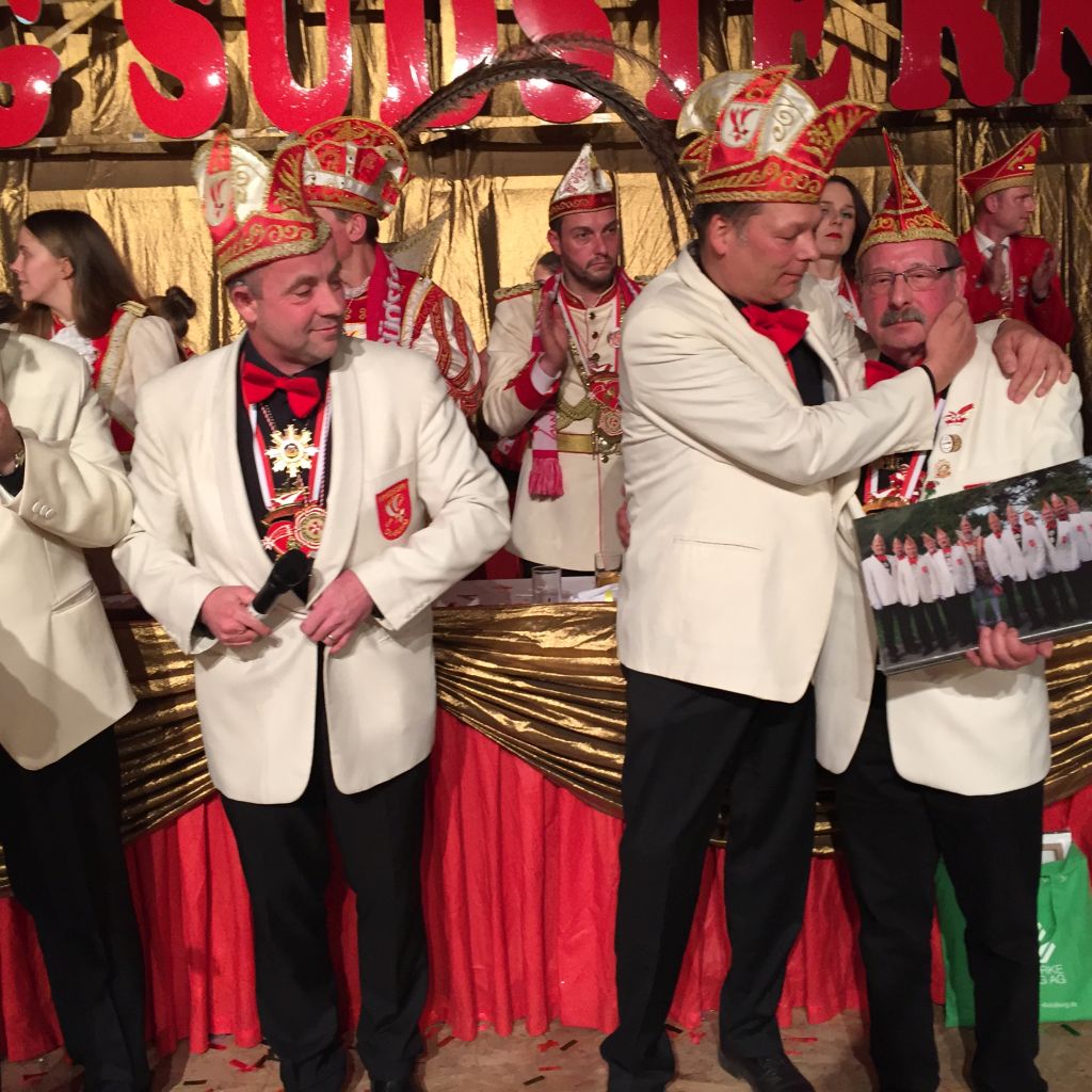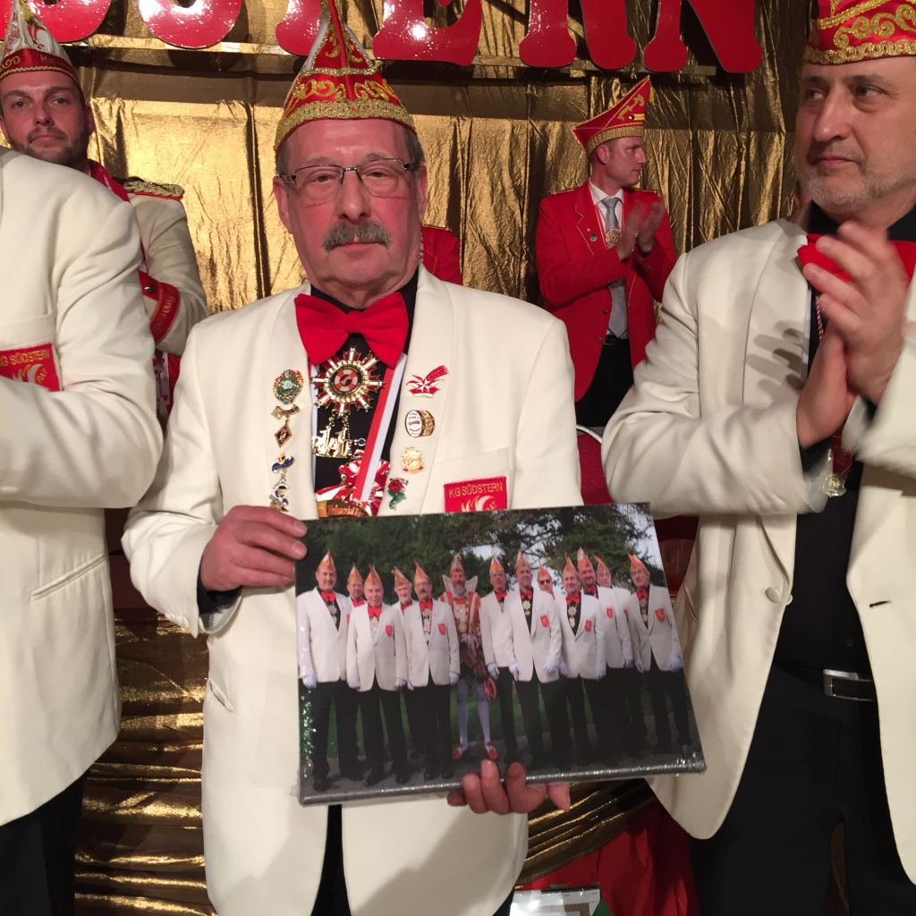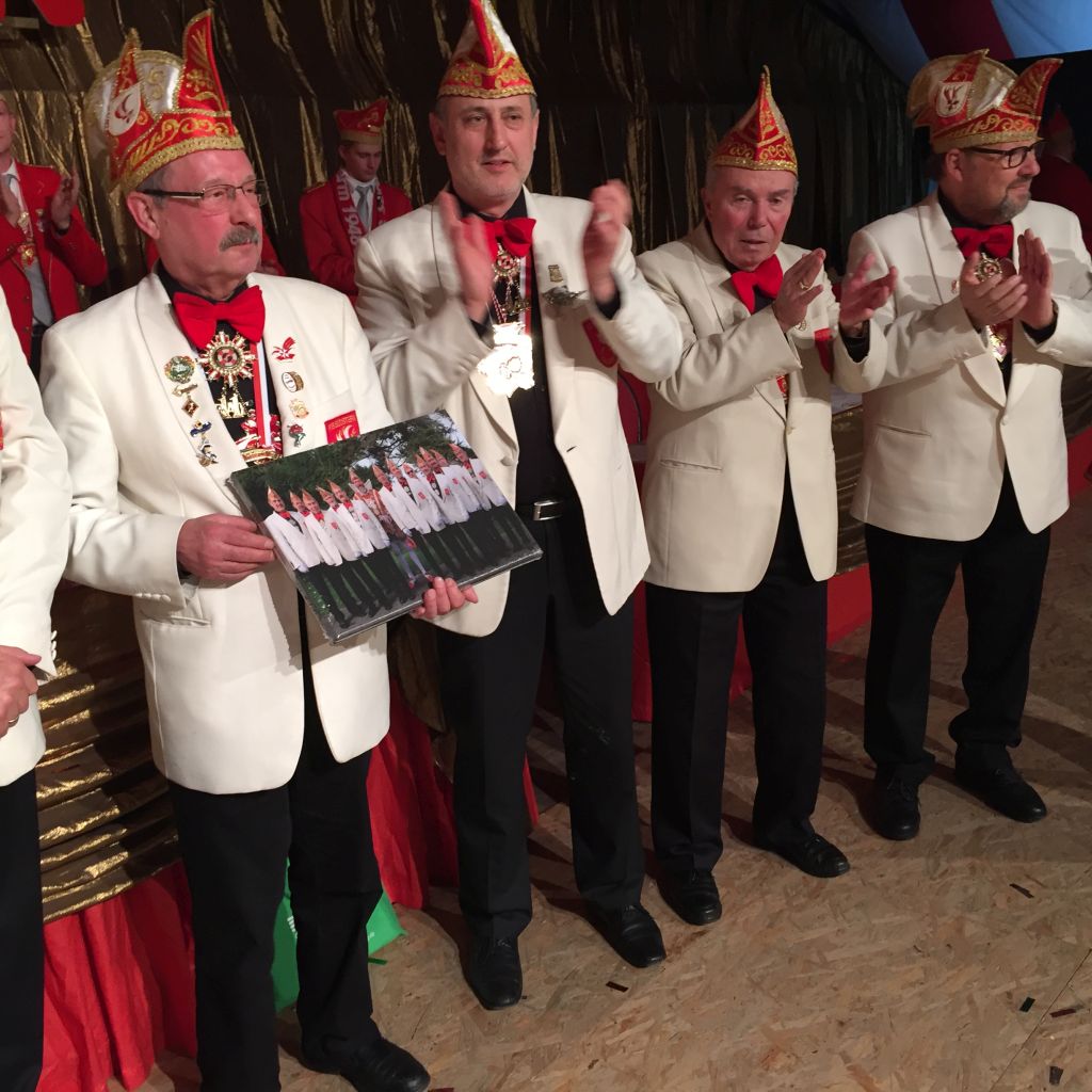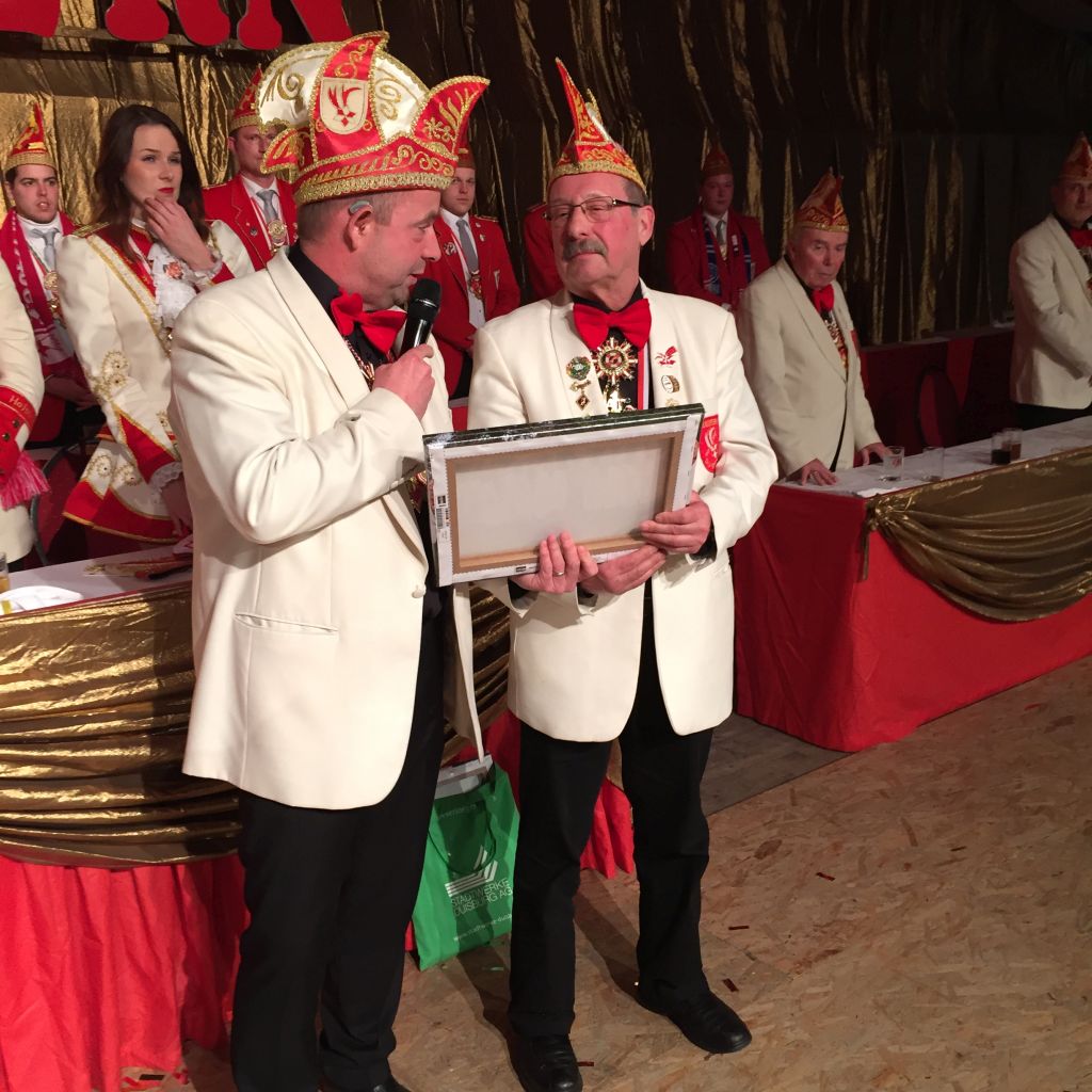 Eine sehr persönliche Geste wurde unseren zwei Willi's (Winks und Holländer) am Rosenmontag gewidmet. Beide haben sich entschlossen in dieser Session zum letzten Mal auf der Bühne zu sein. Wir finden das schade aber Beide haben uns versprochen weiterhin Mitglied des Elferrates zu bleiben. Leider konnte Willi Holländer krankheitsbedingt diese Verabschiedung nicht persönlich erleben. Aber die Verabschiedung wird im würdigen Rahmen nachgeholt. Willi Winks, der über viele Jahre auch die „Elferratskasse“ vorbildlich führte, nahm ein Foto mit Widmung doch mit einigen Tränen entgegen. Wünschen wir beiden Elferratsmitgliedern noch viele Jahre bei bester Gesundheit in unserem Kreis.