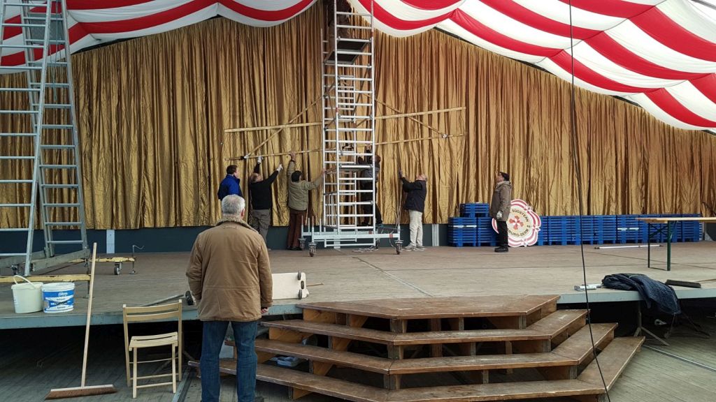 Mit dem Ende der Karnevalssession fallen noch einige arbeitsreiche Tage an. Der Innenausbau des Zeltes wird wieder abgebaut und für das nächste Jahr verstaut. Außerdem müssen die Wagen z. T. abgebaut und untergestellt werden. Den Abschluss der närrischen Tage und Wochen ist das gemeinsame „Fischessen“ mit unseren Frauen.