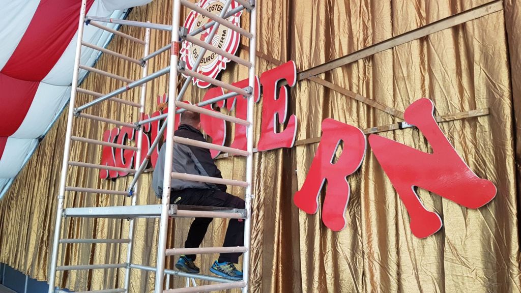 Zu den tragenden Säulen der Karnevalsgesellschaft in Serm gehören neben den Amazonen, der Prinzengarde, den Mädels (und jetzt auch Jungens) der Tanzgarde, den Mitgliedern der Wurstsammler natürlich die Mitglieder des Elferrates. Sie gehören nicht nur zur Verschönerung des Bühnenbildes, sondern haben viele wichtige Aufgaben für den Ablauf einer Session. Der Wagenbau ist zwar nicht mit den Arbeiten der Karnevalswagen der Prinzengarde zu vergleichen aber immerhin stellt der Elferrat zwei Wagen für die Umzüge in Serm und am Rosenmontag in Duisburg. Die wichtigste Aufgabe ist aber der Innenausbau des Festzeltes. Hier wird in ca. einer Woche aus einem tristen Zelt eine farbenfrohe “Narrenhalle“. Um Heizkosten zu sparen werden Deckenventilatoren im Zeltdach eingebaut, die Bühne für die Mitglieder der Amazonen, der Prinzengarde und natürlich für uns wird mit verschiedenen Aufbauten erstellt. Die Bühne wird mit einem rot / weißem Himmel überspannt und eine goldene Rückwand wird eingezogen. Vor die Rückwand kommt der KG- Orden sowie der Schriftzug mit dem Vereinsnamen. Für die Tanzgarden wird die Bühne mit Spanplatten ausgelegt und verschraubt. Wie auf den Bildern zu sehen ist kann sich das Bühnenbild sehen lassen. Nachdem über viele Jahre Luftballons als Zeltschmuck dienten hat man seit 3 Jahren nun rot/ weiße Fahnenkreuze ins Zelt gehangen die durch die warme Heizungsluft immer in Bewegung sind. Auch die Seitenwände werden durch viele bunte Dekorationen geschmückt. Nachdem Tische und Stühle aufgestellt wurden kann die Gesellschaft mit der „Prinzenkürung“ die Session eröffnen. Für die tollen Tage muss das Zelt noch drei Mal umgebaut werden.
